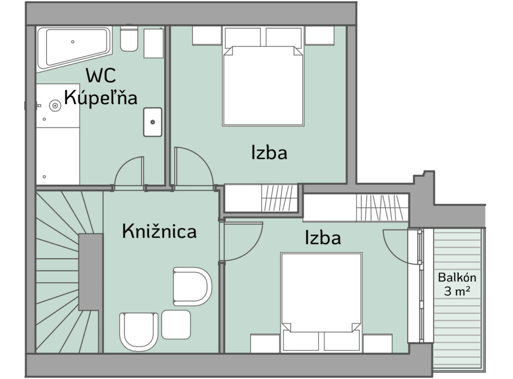 | Plus balkón na poschodí | 3,00 m2 |